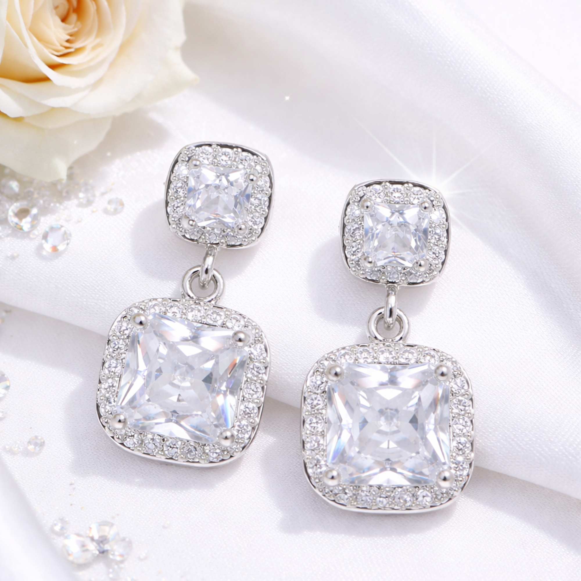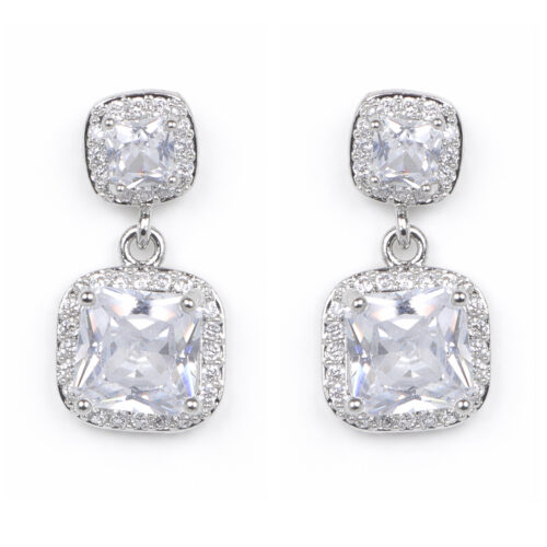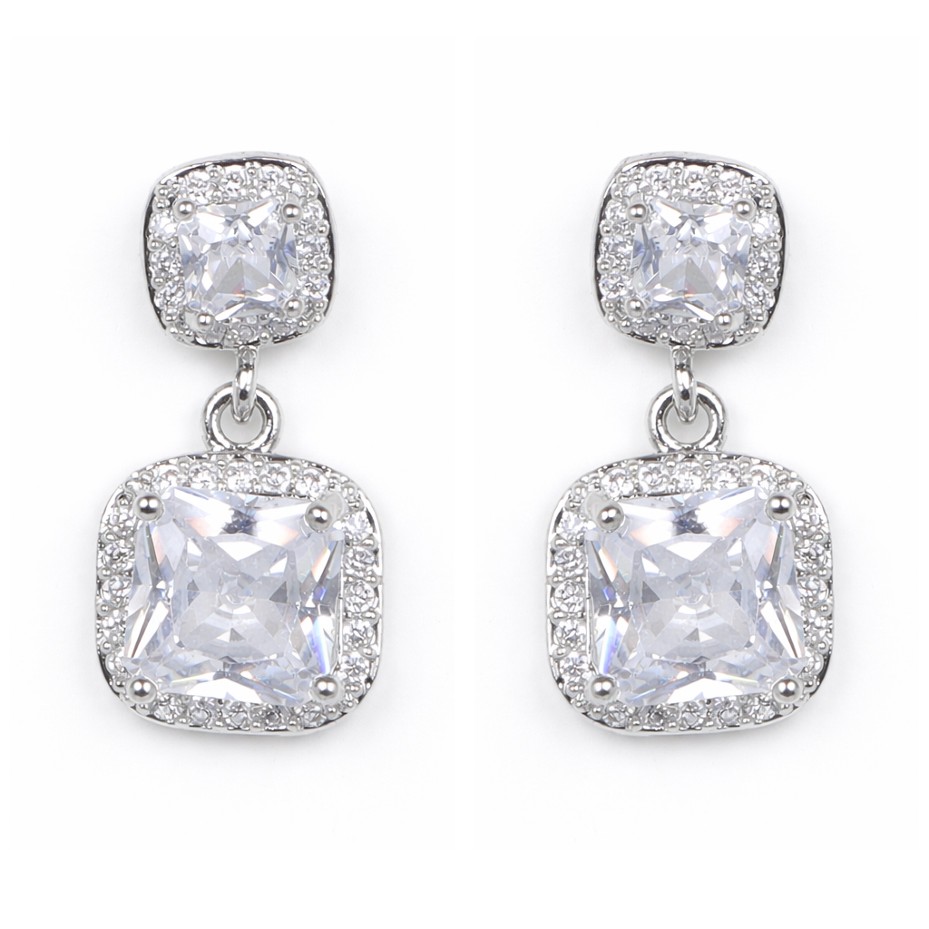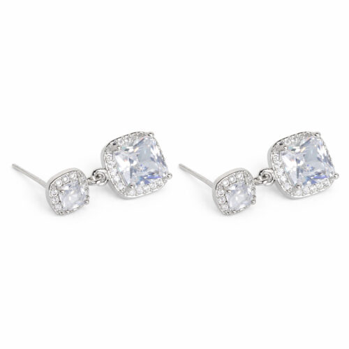 Blue Diamond Earrings – Silver-tone drop earrings adorned with sparkling blue diamond-cut crystal stones, lightweight design perfect for party wear and elegant evening looks. 💎💙