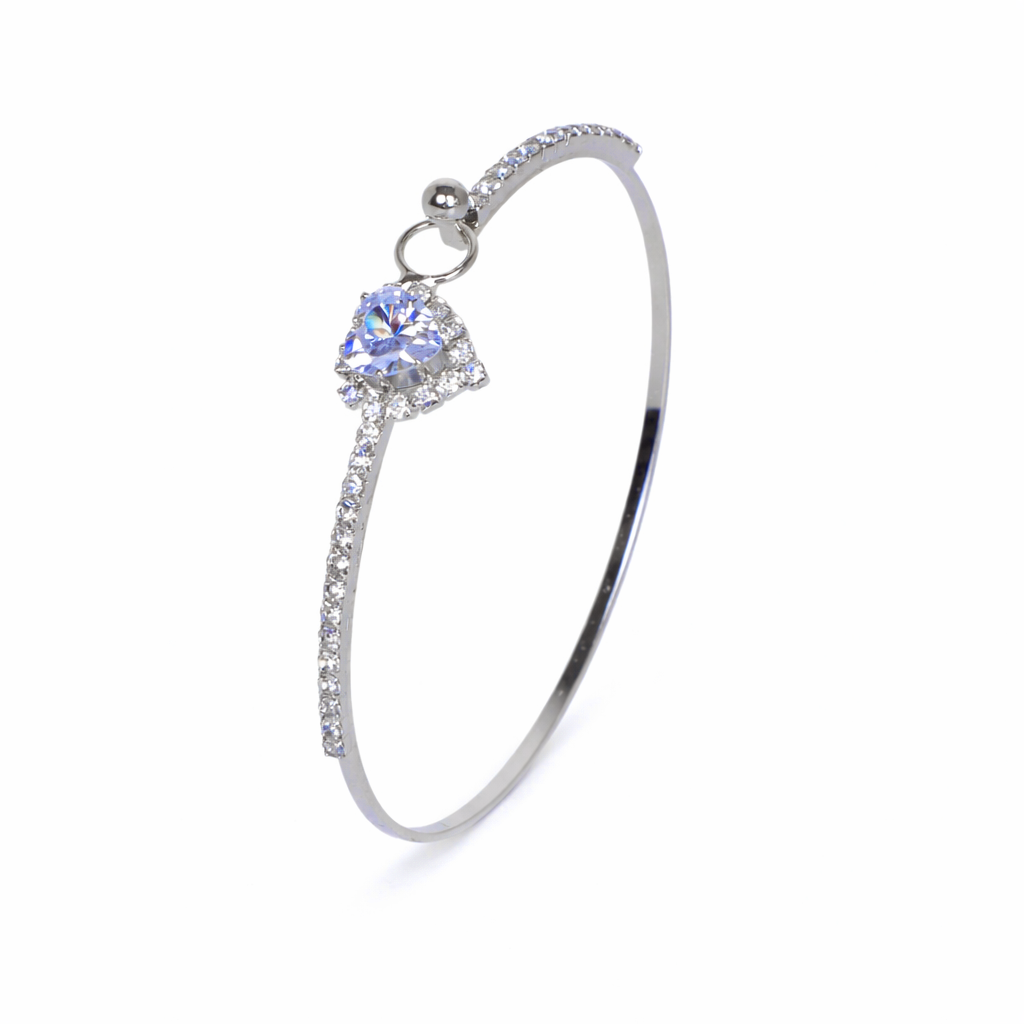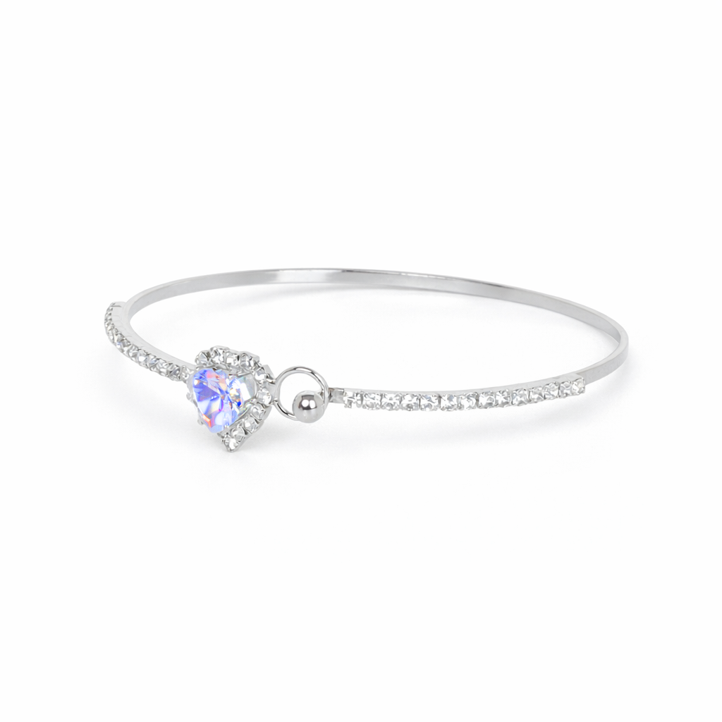 Blue Heart Bangle – A minimalist silver-tone piece with a shimmering blue heart accent, delivering a chic and high-fashion vibe that complements every outfit. 💙