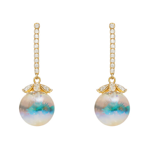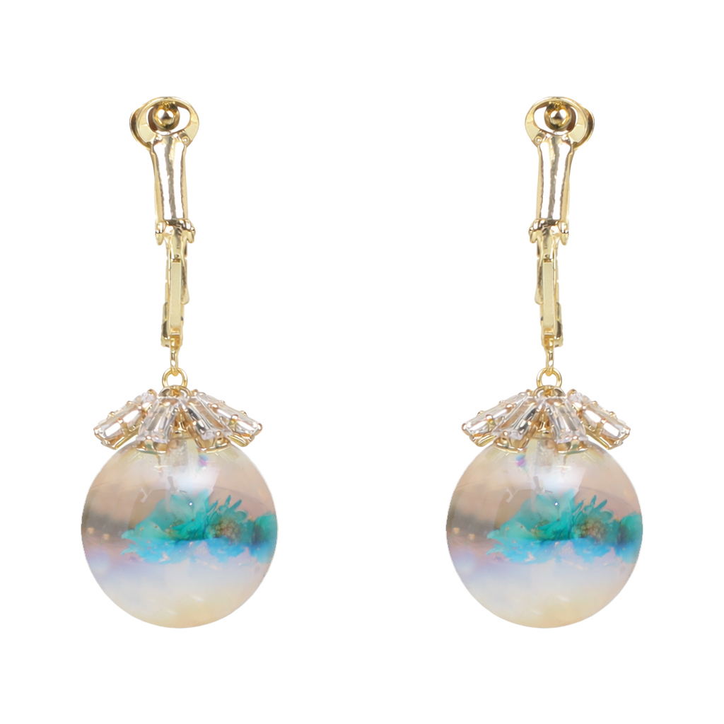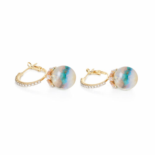 Snow Globe Earrings – Gold-finish hoop earrings featuring a multi-colour crystal-filled glass ball with delicate sparkle, creating a beautiful snow-globe effect perfect for festive and party wear. ✨💚💛