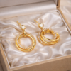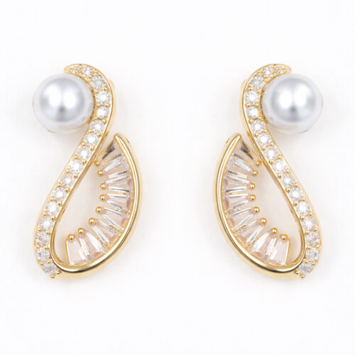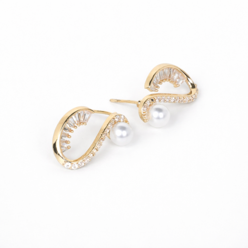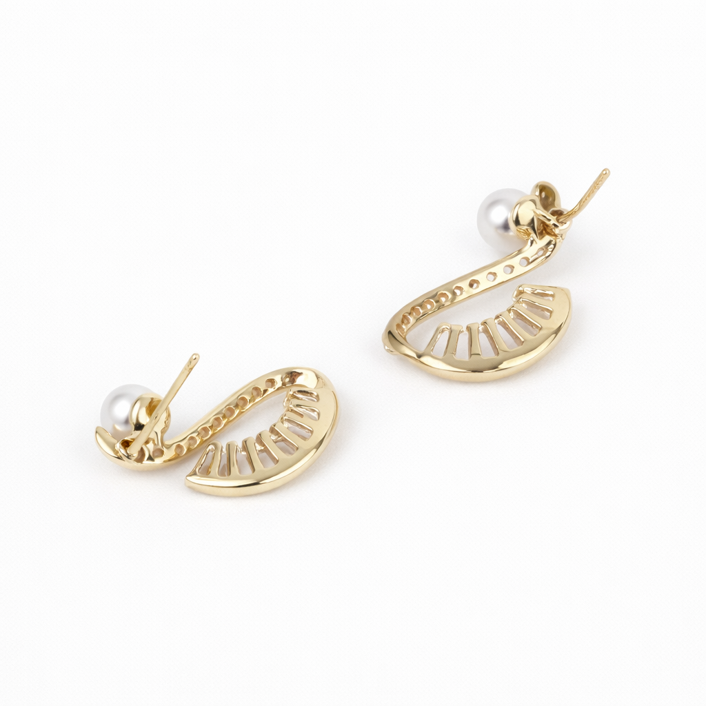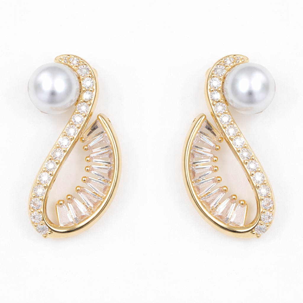 Infiniti Earrings – Gold-finish infinity-style earrings with a classic white pearl and subtle crystal detailing, symbolizing elegance and timeless beauty, perfect for everyday and occasion wear. ✨🤍
