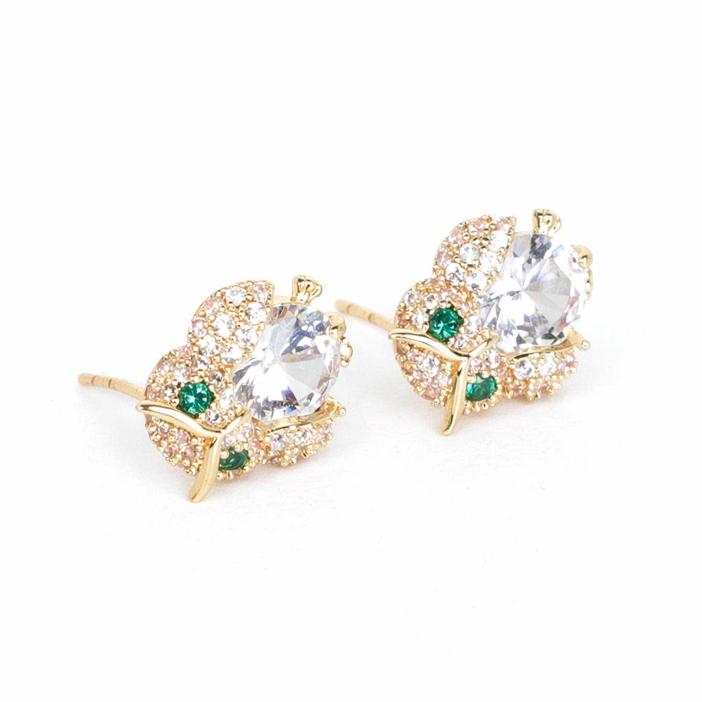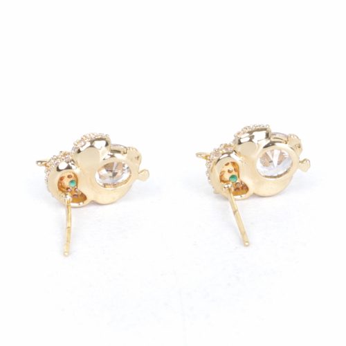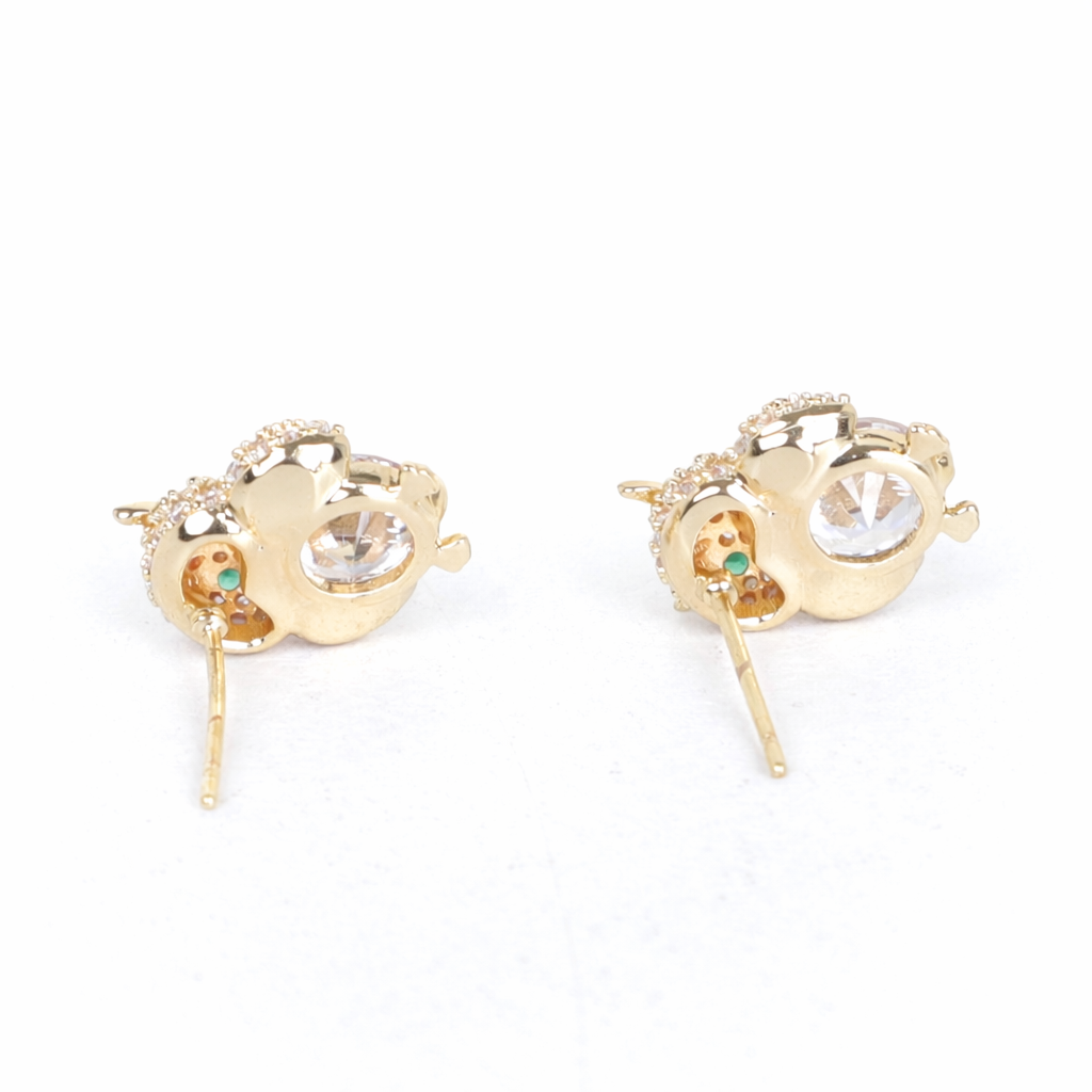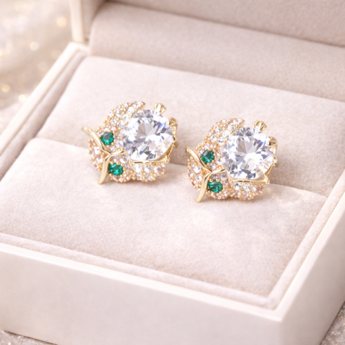 Pechaka Earrings – Gold-finish floral earrings adorned with a multi-faceted crystal stone and subtle green accents, giving a vibrant, premium look perfect for festive and party wear. ✨💚