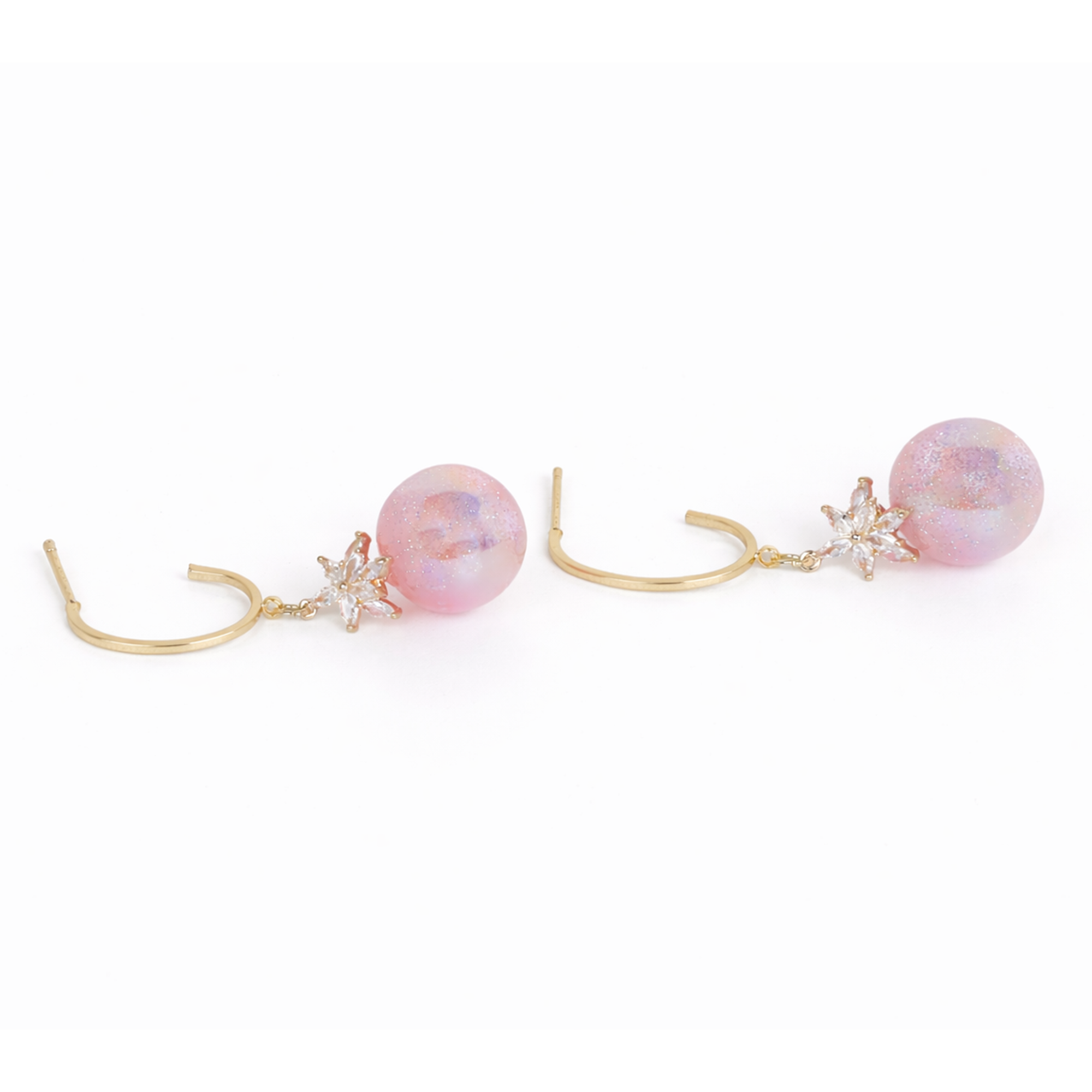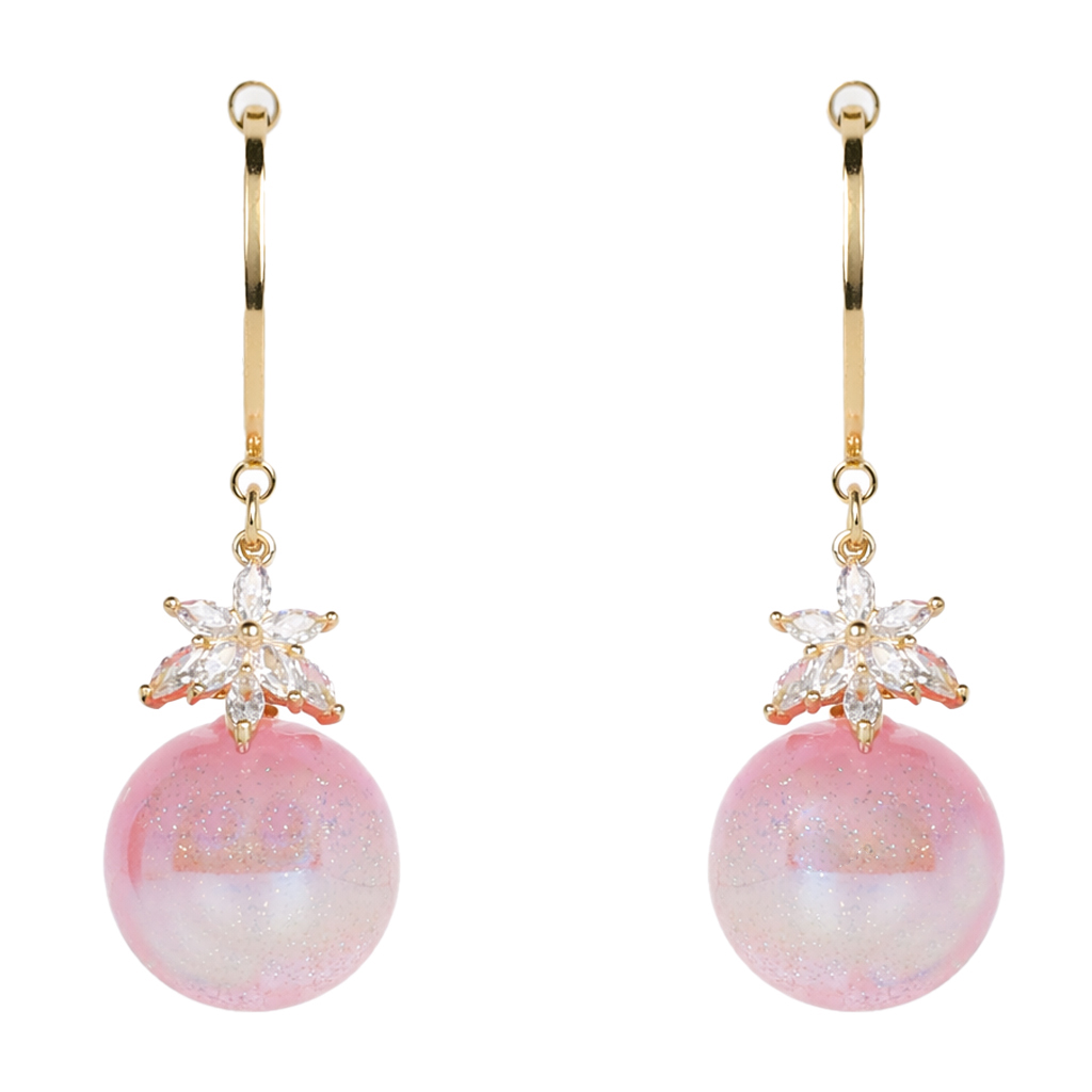 Gold-finish hoop earrings with a glitter-filled glass ball and delicate crystal detailing, giving a dreamy snow-globe effect perfect for party and evening wear. ✨💖